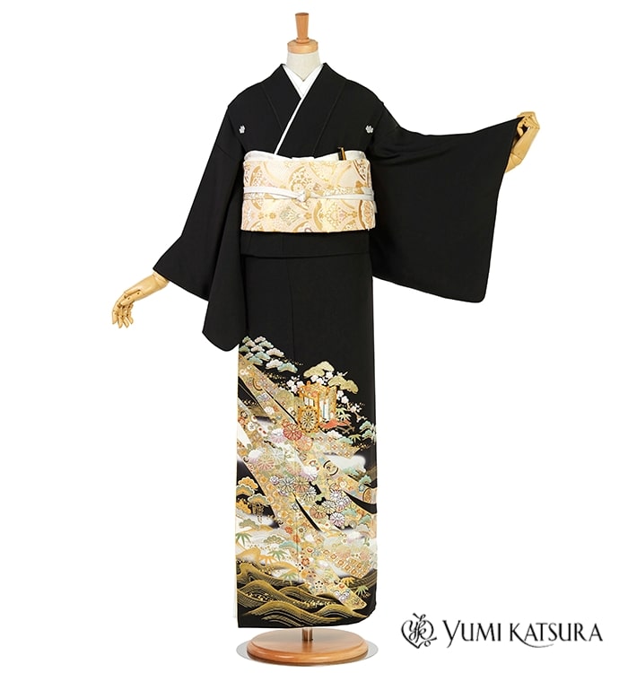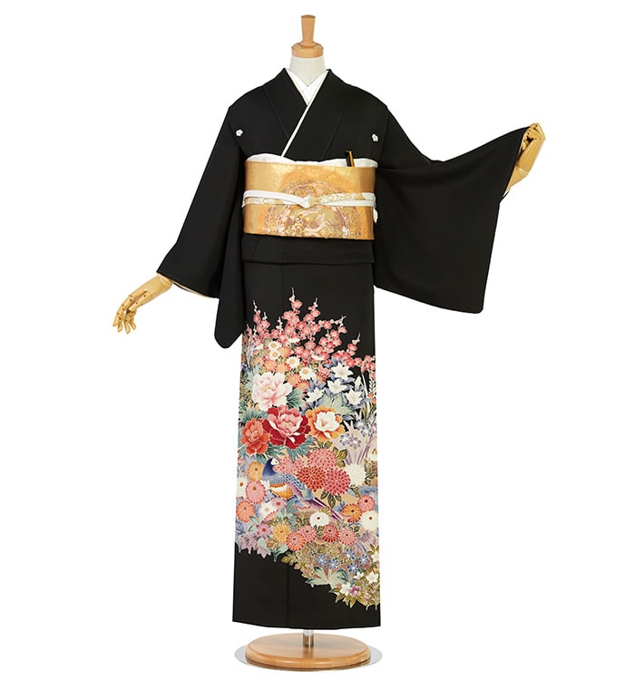 新郎新婦の親族において母親、祖母、結婚している親族といった関係は、通常黒留袖を着用します。紋の数は着物の格をあらわしており、格式高い五つ紋の黒留袖は既婚女性の第一礼装です。つまり、友人や同僚など親族以外の女性が着用することはふさわしくありません。